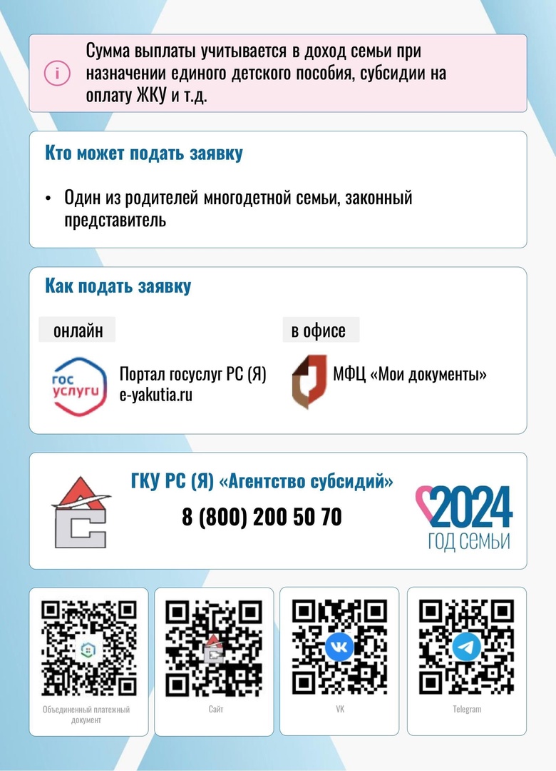 Заявление можно подать электронно через Региональный портал государственных услуг (РПГУ) по ссылке e-yakutia.ru, либо очно через центр «Мои Документы».