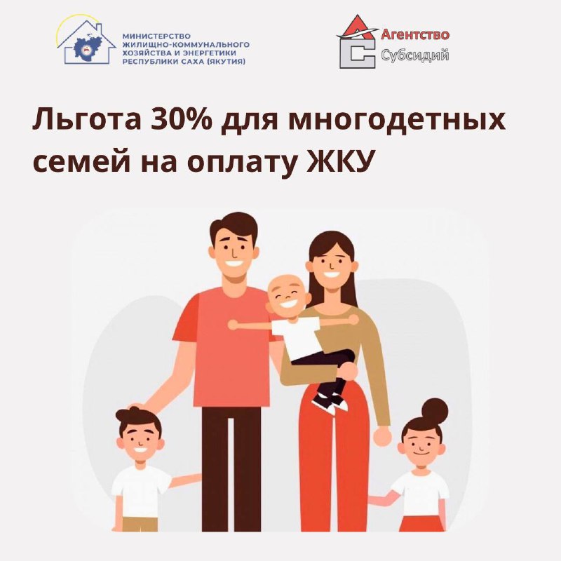 В Якутии многодетные семьи могут рассчитывать на различные льготы и пособия, включая поддержку по оплате жилищно-коммунальных услуг (ЖКУ), сообщает пресс-служба Министерства ЖКХ и энергетики.