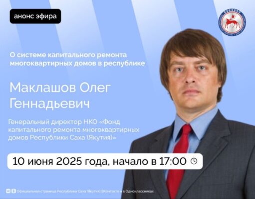 Во вторник, 10 июня 2025 года, генеральный директор НКО «Фонд капитального ремонта многоквартирных домов Республики Саха (Якутия)» Маклашов Олег Геннадьевич проведет прямой эфир на официальных страницах Администрации Главы и Правительства республики в социальных сетях «ВКонтакте» и «Одноклассники».