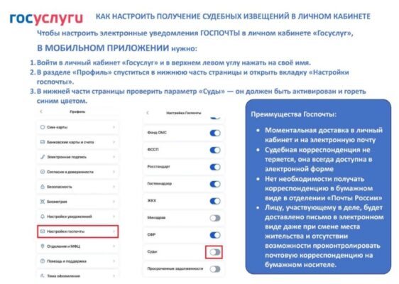 Настройка получения судебных извещений в личном кабинете «Госуслуги» позволяет гражданам получать уведомления о судебных процессах в электронном виде, что значительно упрощает их взаимодействие с судебной системой.