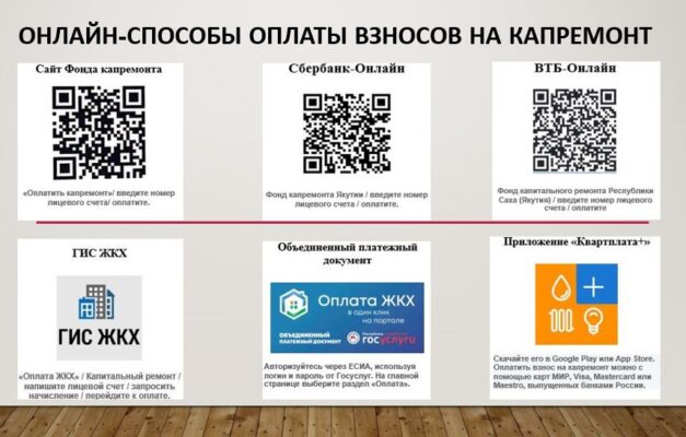Фонд капремонта Якутии напоминает, что согласно ч. 1 ст. 169 Жилищного Кодекса Российской Федерации, оплата взносов на капитальный ремонт общего имущества многоквартирных домов является обязательной для всех собственников помещений и производится ежемесячно до 10 числа текущего месяца, следующего за предыдущим.