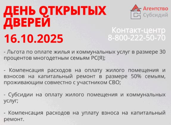 Министерство жилищно-коммунального хозяйства и энергетики Республики Саха (Якутия) приглашает студентов и активную молодежь на День открытых дверей. Мероприятие состоится 30 октября 2025 года в актовом зале здания Министерства по адресу: ул. Кирова, 13, 3 этаж. Начало в 17:30. Цель мероприятия – познакомить будущих специалистов с деятельностью одного из ключевых органов исполнительной власти республики, рассказать…