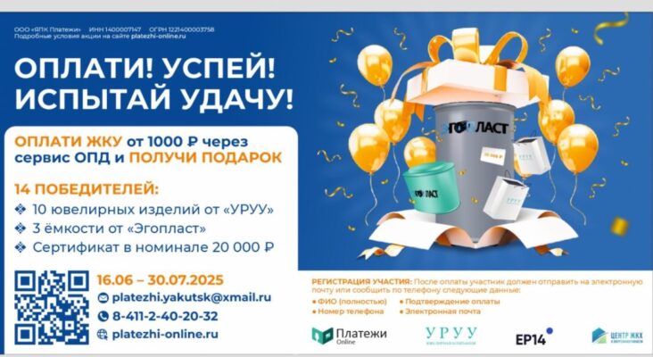 В Якутии объявили акцию «Оплати! Успей! Испытай удачу!»: получите шанс выиграть ценные призы за оплату ЖКУ через сервис «Объединенный платежный документ»